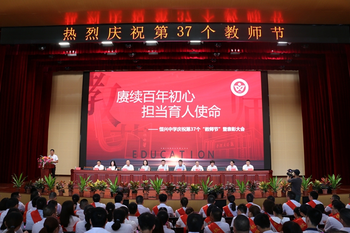 當天下午3點,恒興中學鐵錚大禮堂座無虛席,伴隨著莊嚴的國歌聲,慶祝教師節(jié)暨表彰大會拉開序幕。大會表彰了2020-2021學年度“三十佳教師”、“優(yōu)秀教師”、“優(yōu)秀班主任”、“優(yōu)秀員工”、“優(yōu)秀共產黨員”,校董會頒發(fā)了中高考獎教金。